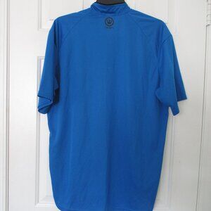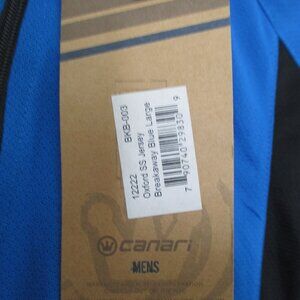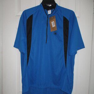 Canari Mens S/S Bike Cycling 1/4 Zip Jersey w/o Triple Pockets. Size Large. Armpit-to-armpit 23", Length 30". 100% Polyester in Blue/Black. New with Tags, suitable for gifting.