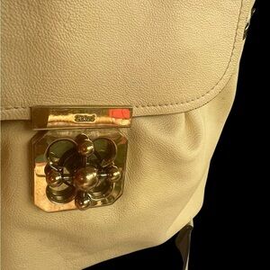 Fabulous red Chloe Elsie . Bag is in fantastic shape. No wear on the corners. Clean inside and out. Only flaw is a slight amount of wear on the turn lock plating. Bag has adjustable shoulder strap, gold tone turn lock plating and zip accent on the shoulder strap. ID # 01-11-50
