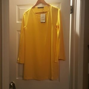 Never worn canary yellow Zara dress. Falls above the knees and has slit down the sleeves. Accent the dress with a pair of electric blue, kelly green or even red hot heels and you will be sure to turn heads.