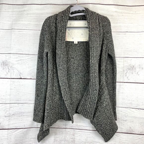 Canary by Anthropologie Marled Gray Cable Chunky Ribbed Open Front Cardigan XS