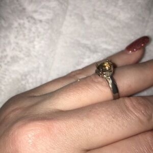 Canary yellow genuine crystal and sterling silver ring with whale tail bezel