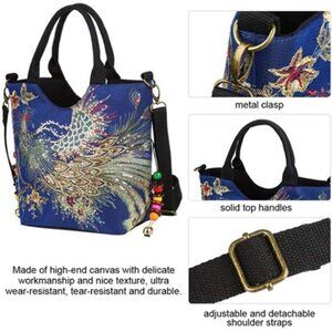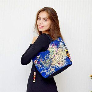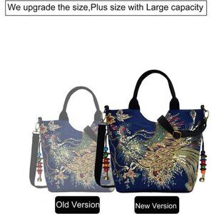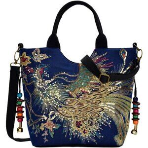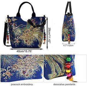 *The size of this women handbag is 15.75x11.42x4.7inch, so it has large capacity to carry your belonging, what's more with double side peacock sequins embroidered, it can make you stand out everywhere, it's your best choice.