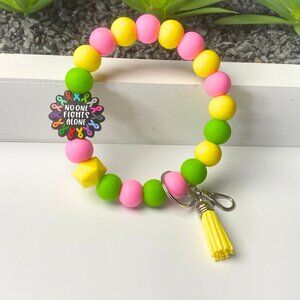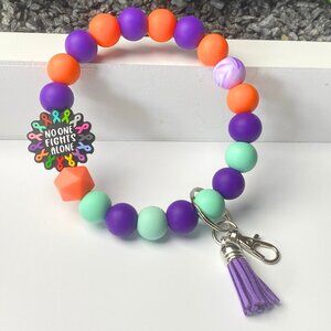 Show your support and raise awareness with this collection of Cancer Awareness wristlet keychains. Each beaded wristlet is a stylish and practical way to keep your keys secure while honoring a loved one's journey. Choose from a variety of colors and designs, each featuring a meaningful awareness ribbon. These keychains are perfect for survivors, supporters, or anyone who wants to carry a symbol of hope and strength with them every day. They also make a thoughtful gift for friends and family.