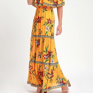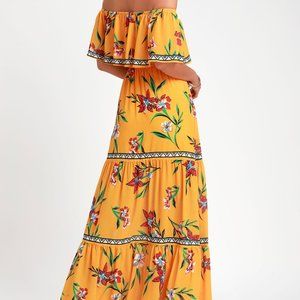 Cancun Cutie Yellow Floral Print Off-the-Shoulder Maxi Dress