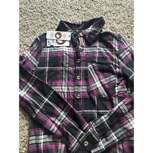 Canda Weather Gear Girl Plaid Flannel purple black Button up long sleeve Medium