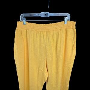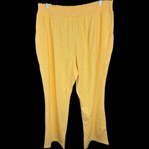This item is a pair of Candace Cameron Bure slub knit lounge pants in apricot. It is a size Petite Large. This item has never been worn. It does not have attached tags but does have the original packaging that it came with. I opened the packaging in order to take photos and measurements for this listing.