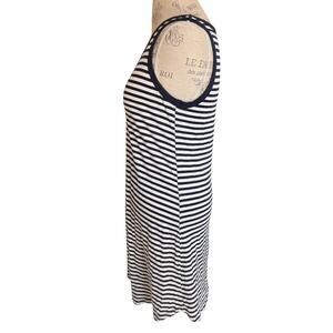Sleeveless striped dress. Black and white pattern. Casual and stylish.