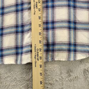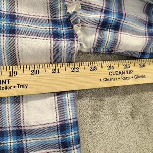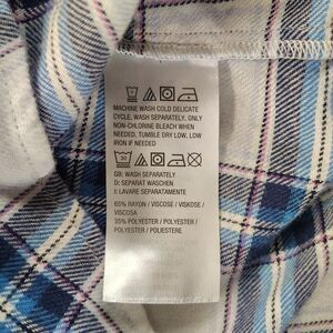 The Candace Cameron Bure Button Up Blue Plaid Shirt with Ruffle Balloon Sleeve in size M is a stylish and versatile addition to any woman's wardrobe. Made from flannel fabric with a touch of rayon, this blouse features a collared neckline, button closure, and long balloon sleeves accented with ruffles. Perfect for casual occasions in the winter, fall, or spring, this shirt exudes a classic western or preppy style with a hint of retro charm. Machine washable and in great condition, this top is a must-have for women looking for a chic and comfortable option.