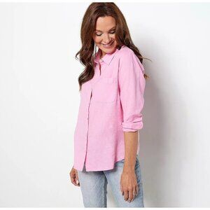 Candace Cameron Bure Camellia Pink Petite Linen Blend Button- Front Shirt XLP