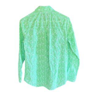 Candace Cameron Bure Green 100% Cotton Eyelet Flowers Long Sleeve Button Down Shirt, Size XXSP