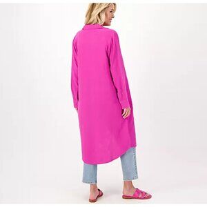 Candace Cameron Bure Hot Fuchsia Regular Button- Front Gauze Shirtdress Size M