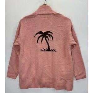 Candace Cameron Bure Pink Palm Tree Cardigan Sweater Size Small