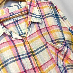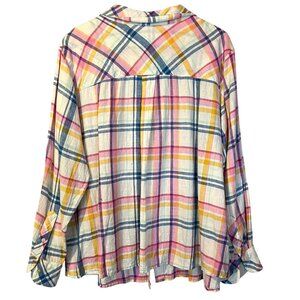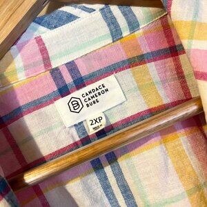 Candace Cameron Bure Plaid Linen Blend Button-Up Shirt 2XP Spring Office Career