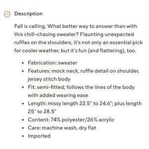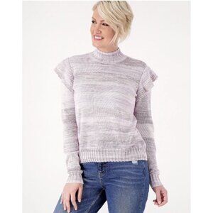Candace Cameron Bure Ruffle Shoulder Mock Neck Sweater XXS Purple A518429