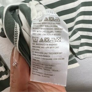 Features: mixed stripes, long sleeves, dropped shoulder, ribbed neck and sleeve cuffs, round neck, shirring at sleeve cuff