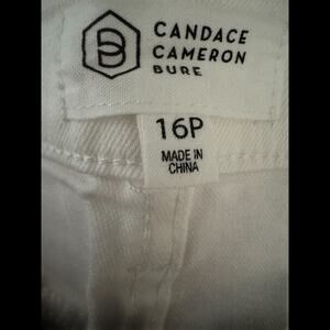 This item is a pair of Candace Cameron Bure white distressed denim shorts.