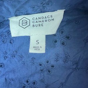 Candace Cameron Bure Women Top Button Front Eyelet Shirt Navy Blue sz S A593140