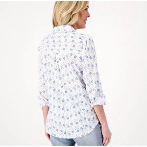 Candace Cameron Bure Women Top Button Front Eyelet Shirt White Blue Sz S A593140
