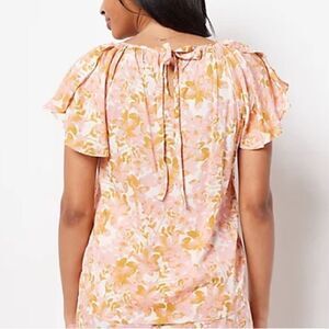 Candace Cameron Bure Printed Tulip Sleeve Bow Back Blouse