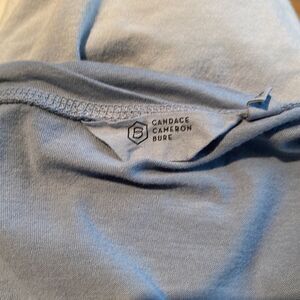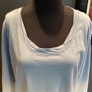 Candace Cameron Bure The Ocean Dipped Long-Sleeve Tee. Twisted neckline. 100% cotton. Ash Blue. Light stretch. Medium. New, no tags. Nonsmoking home.