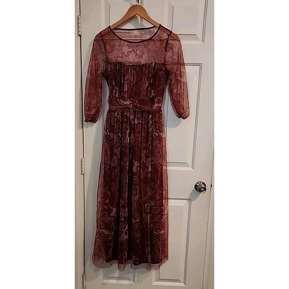 Candalite Burgandy Dress Small Maroon Sheer Bohemian Red Cottage Core Maxi