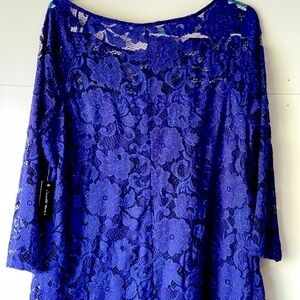 Beautiful blue floral lace dress, sparkly glitter shimmer, fully lined, pullover closure.