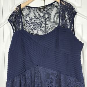 Candalite Formal Maxi Dress Women's Size 3X Navy with Lace Overlay Wedding Party