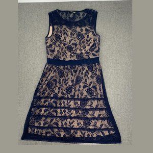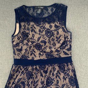 Candalite Petite Beautiful Lace Floral Dress Blue Beige Lining Sleeveless PM