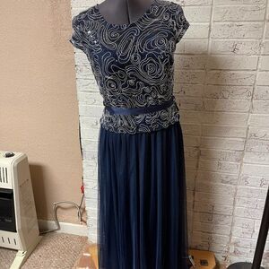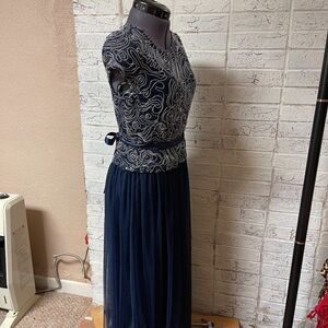 Very good condition. Sequined top. Semi sheer top. Layered bottom. Removable satin belt. No holes, rips, or stains.