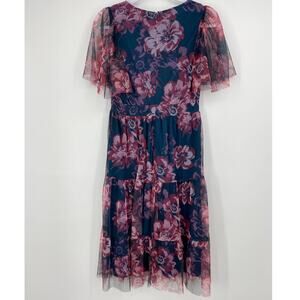 Candalite Womens Blue Purple Floral Lined Knee Length Dress NEW Small