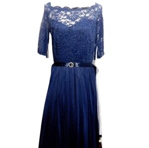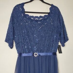 NWT Candalite Women's Sequin Lace Maxi Dress Size 3X. Beautiful full-length formal dress with a sequined lace stretchy bodice and mesh overlay flowy skirt.
