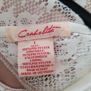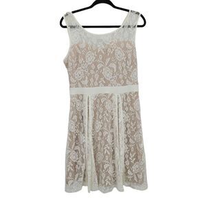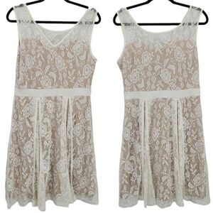 Candalite Dress Bridal Nude Lined White Lace Overlay Illusion Fit & Flare Sz L