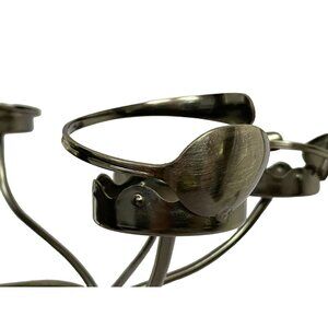 Modernist Artsy Pewter Finish Spoon Fork Candelabra