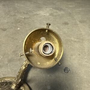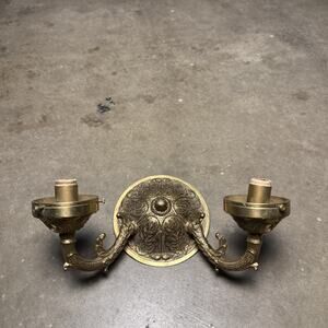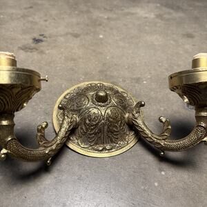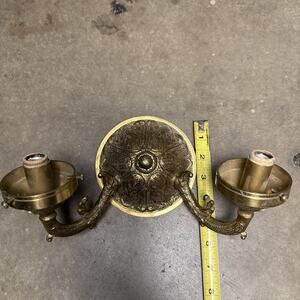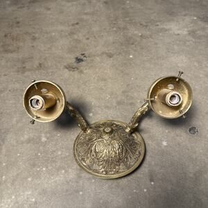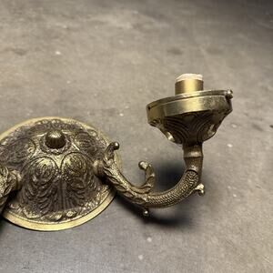 This beautiful candelabra is a solid brass ornate wall sconce that will add a touch of elegance to any room. The intricate details of this piece are a testament to the craftsmanship of the 1950s Victorian era. It features salvage capabilities and is an antique original that has been well-maintained over the years.
