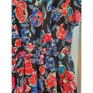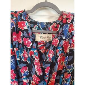 Candi Jones Vintage 80's Floral Ruffled Vibrant Short Sleeve Midi Dress Sz 9/10