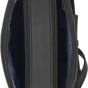 Features: This chic embossed black purse has a sleek silhouette with a trendy logo detail on the exterior. It includes an adjustable shoulder strap, an exterior back slip pocket for quick access, and an interior zippered pocket to keep your essentials organized. Perfect for carrying your phone, wallet, and keys without bulk.