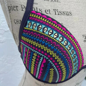 Candied Purple Womens Light Lift Aztec Geometric Stripes Bra Multicolor Sz 38B