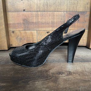 Candies 8.5 medium women's sequin black heels.
