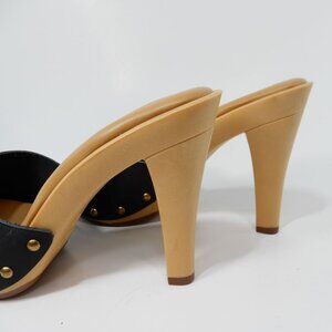 Candie's Antonella OMG Slide Platform Heels Clog SANDAL Size 7 Black Leather NEW