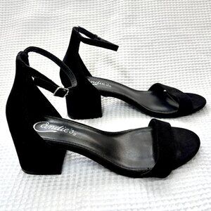 From Candie's these black faux suede strappy block heels in size 6 M are chic and glamorous!