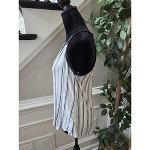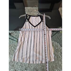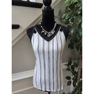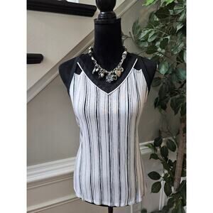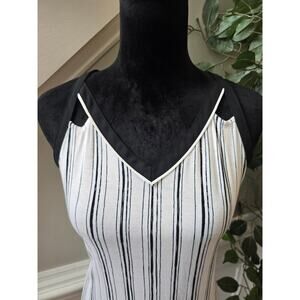 Candie's Blouse Top Women M White Black Striped Rayon Stretch V Neck Sleeveless