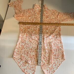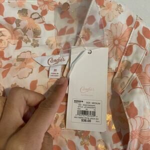 CANDIES BLOUSE WOMENS M MEDIUM FLORAL TAB SLEEVE BUTTON MIXED FABRIC PETAL BACK