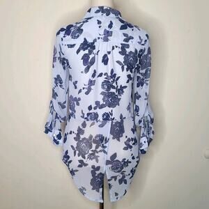 Candies Blue Floral Hi Lo Button Up Roll Tab Sleeves Flowercore Bloomcore XS