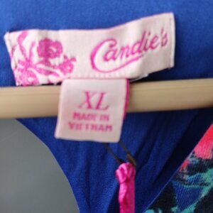 Candies Blue Floral Print Flare Dress Sweetheart Cutout Bow Back - NWT -Size XL
