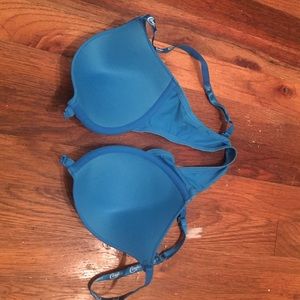 Never been worn Candie's bra with front clasp and underwire. Straps have a clasp to make them convertible to racerback or can be moved to cross positions.