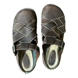 These Candie's mules feature a rich brown color and a stylish woven leather design, perfect for adding a touch of elegance to any outfit. The cushioned footbed ensures comfort for all-day wear, while the closed toe offers added protection. Ideal for casual outings, these mules combine practicality with a chic, artisanal look. No size- see measurements