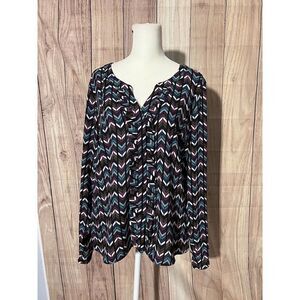 Candie’s Button Down Blouse Geometric Design Sz Large.