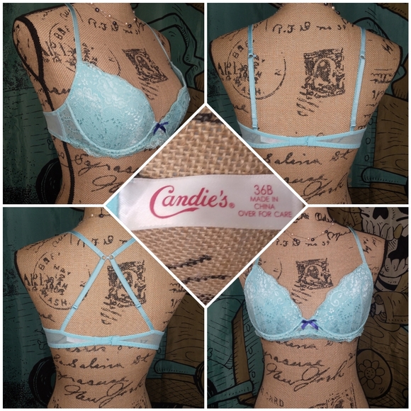 Light padding, underwire, rear closure with convertible straps, NOT removable straps. sky blue with matching lace. Candie's is a staple of y2k/millennium fashion aesthetic. Nwot. Womens size 36B