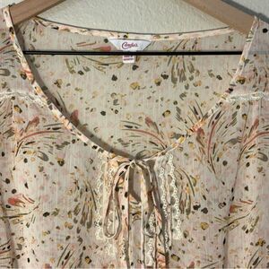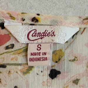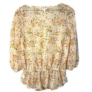 Candie's Cream Peplum Blouse Women’s S with Puff Sleeves Sheer.