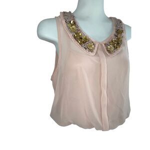 Turn heads in this stunning Candie’s sleeveless dress, size Medium! Featuring a soft blush pink chiffon-style top with a dazzling sequin and beaded Peter Pan collar, this dress brings all the glam without sacrificing comfort. The sleek black skirt gives a polished, flattering silhouette perfect for cocktail parties, date nights, holiday gatherings, or any semi-formal event.